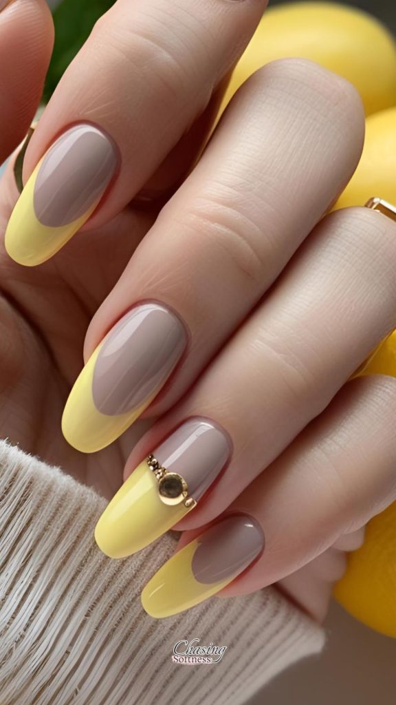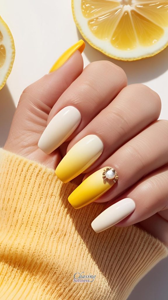 Start with a pale yellow at the cuticle and fade into a brighter butter tone at the tip. This subtle ombré adds a sweet, citrusy twist.