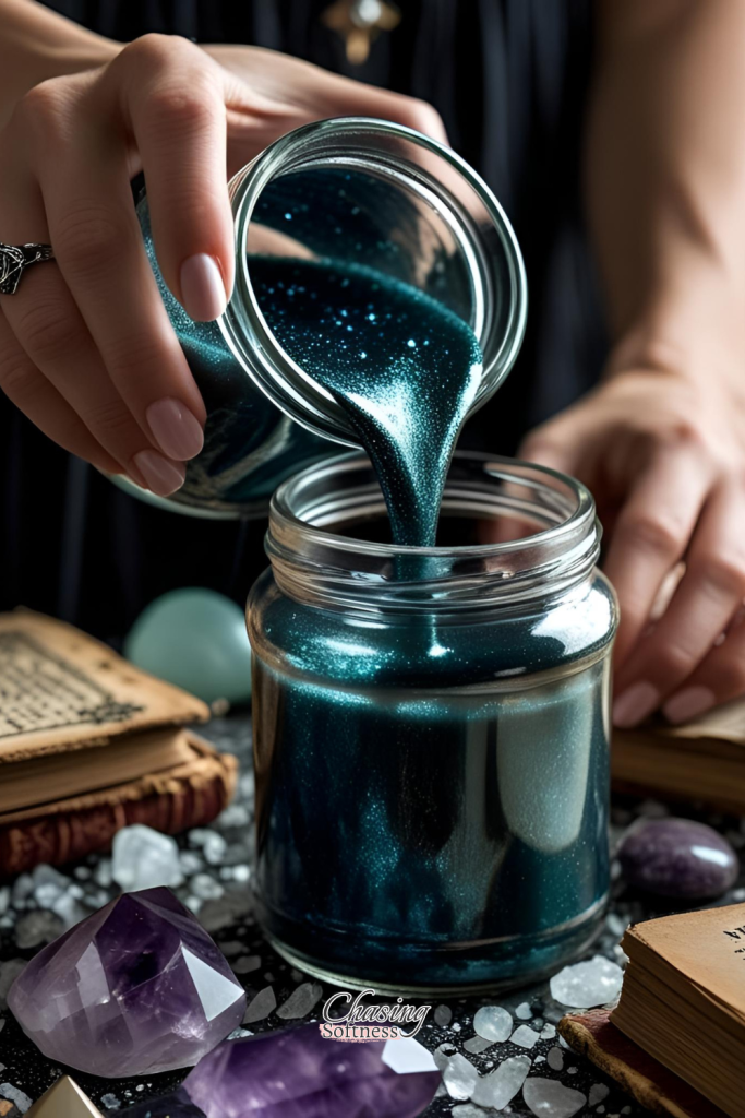 Add natural candle dye if you want a deep black, blood red, or haunting purple. Stir slowly, visualizing your energy pouring into the mix. - Pour and Set