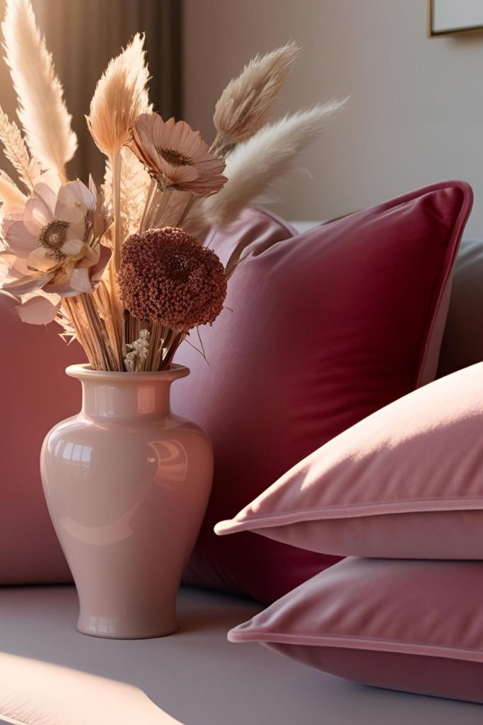 - Paint simple vases in soft pinks and whites and fill them with dried flowers or pampas grass.