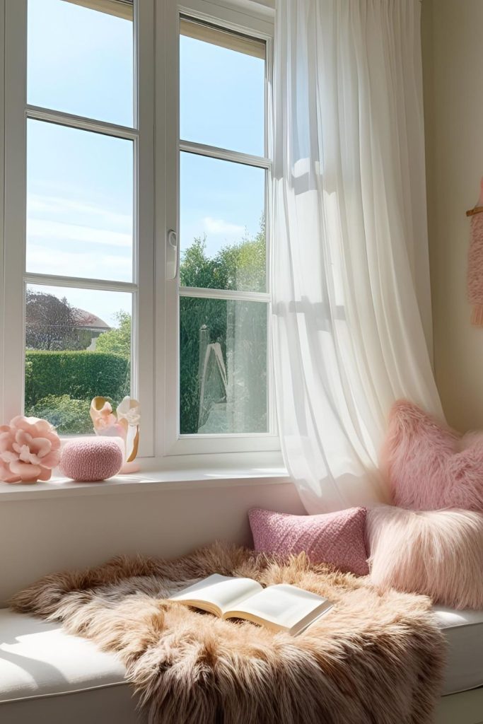 A soft-girl bedroom isn’t just about the bed—it’s about creating little pockets of calm where you can relax, reflect, and recharge. Whether it’s a window seat draped with cushions, a reading nook with a comfy chair, or a corner filled with plants and personal mementos, these spaces make your bedroom feel like a true retreat.