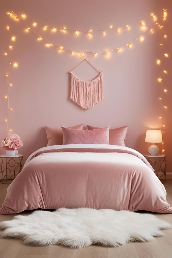 - DIY Tip: Create a dreamy canopy by draping fairy lights around your bed frame or across the ceiling. Use warm white bulbs to add softness without overwhelming brightness.